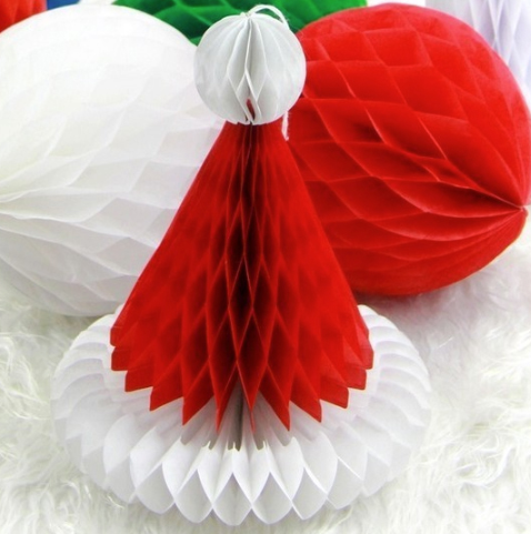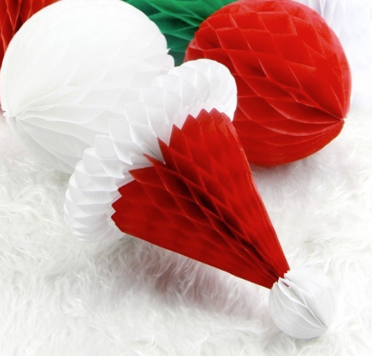 Подвесное бумажное украшение, сотовые шапки Деда Мороза.