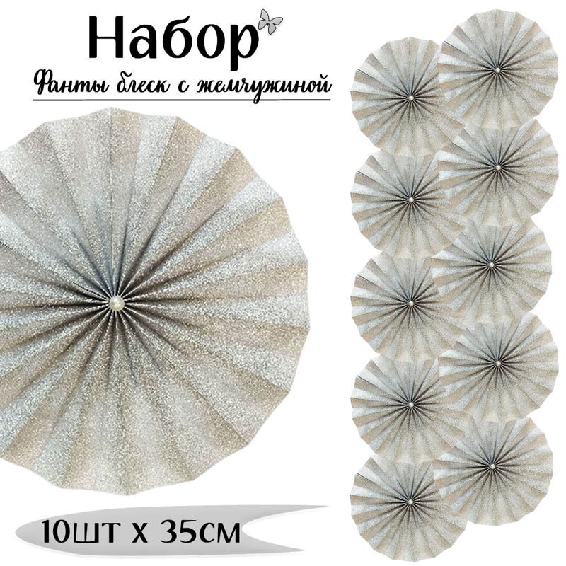 Фанты блеск с жемчужиной НАБОР 10шт х 35см, серебро