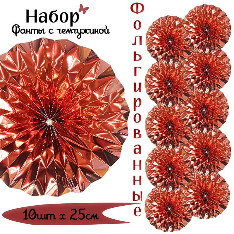Фанты фольгированные с жемчужиной НАБОР 10шт х 25см, розовое золото