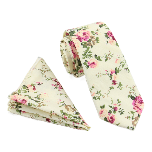 В комплект входит галстук 6х145 см и нагрудный платок 24х24 см  изготовлены из хлопка, имеют цветочный принт.