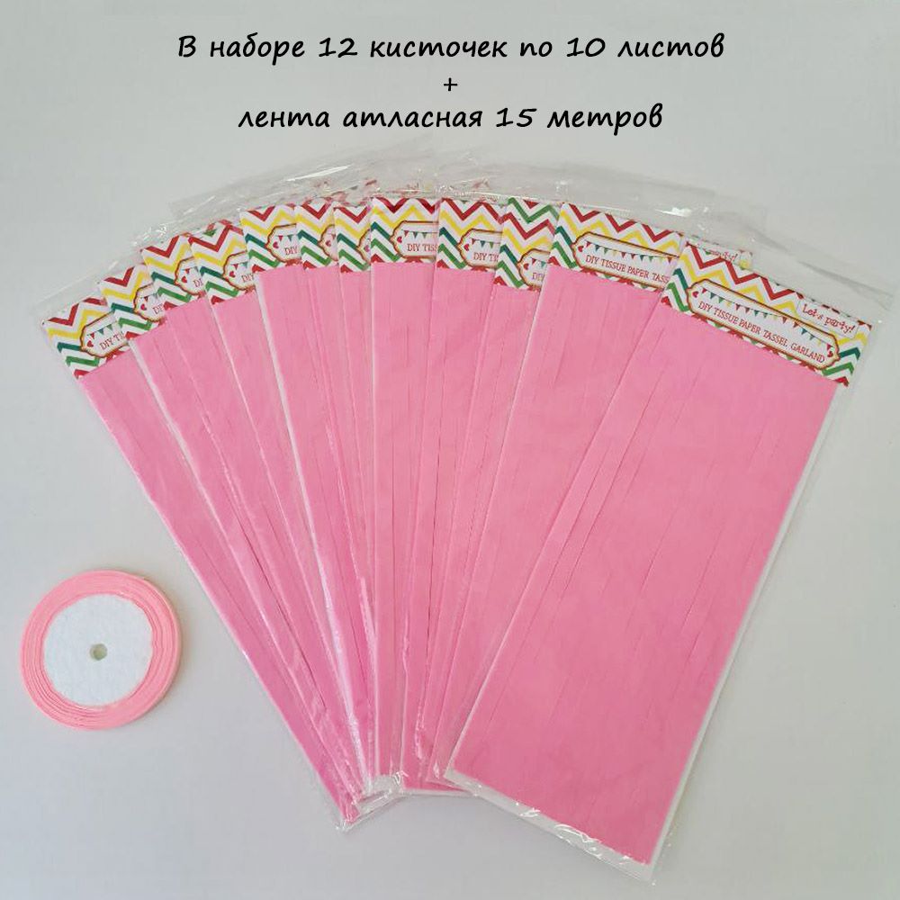 Гирлянда тассел 12 кисточек по 10 листов, розовый