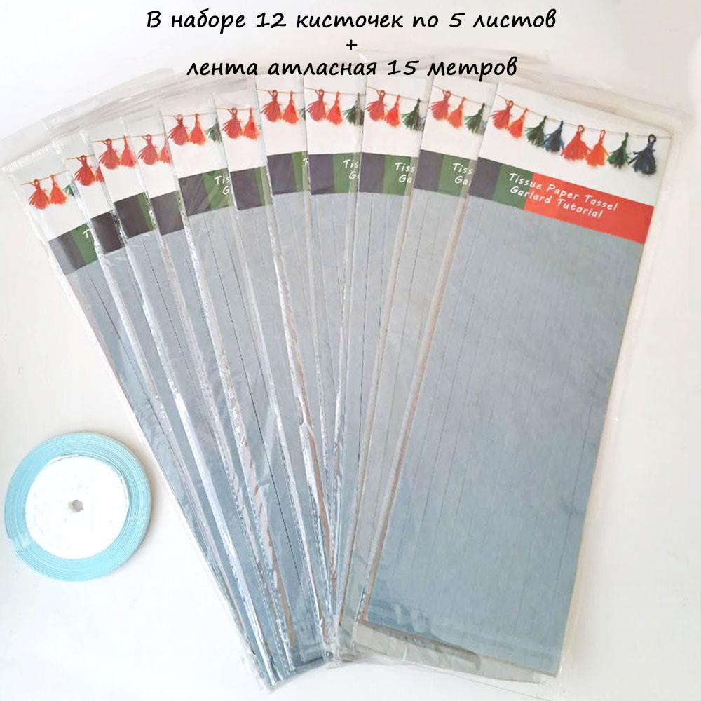 Гирлянда тассел 12 кисточек по 5 листов, серый