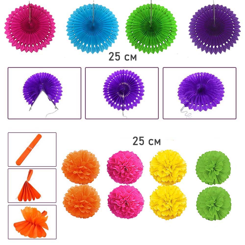 Набор из бумажных фантов, помпонов и гирлянд, можно применять в качестве декорирования фотозоны к празднику, и праздничного стола. Можно использовать несколько раз.