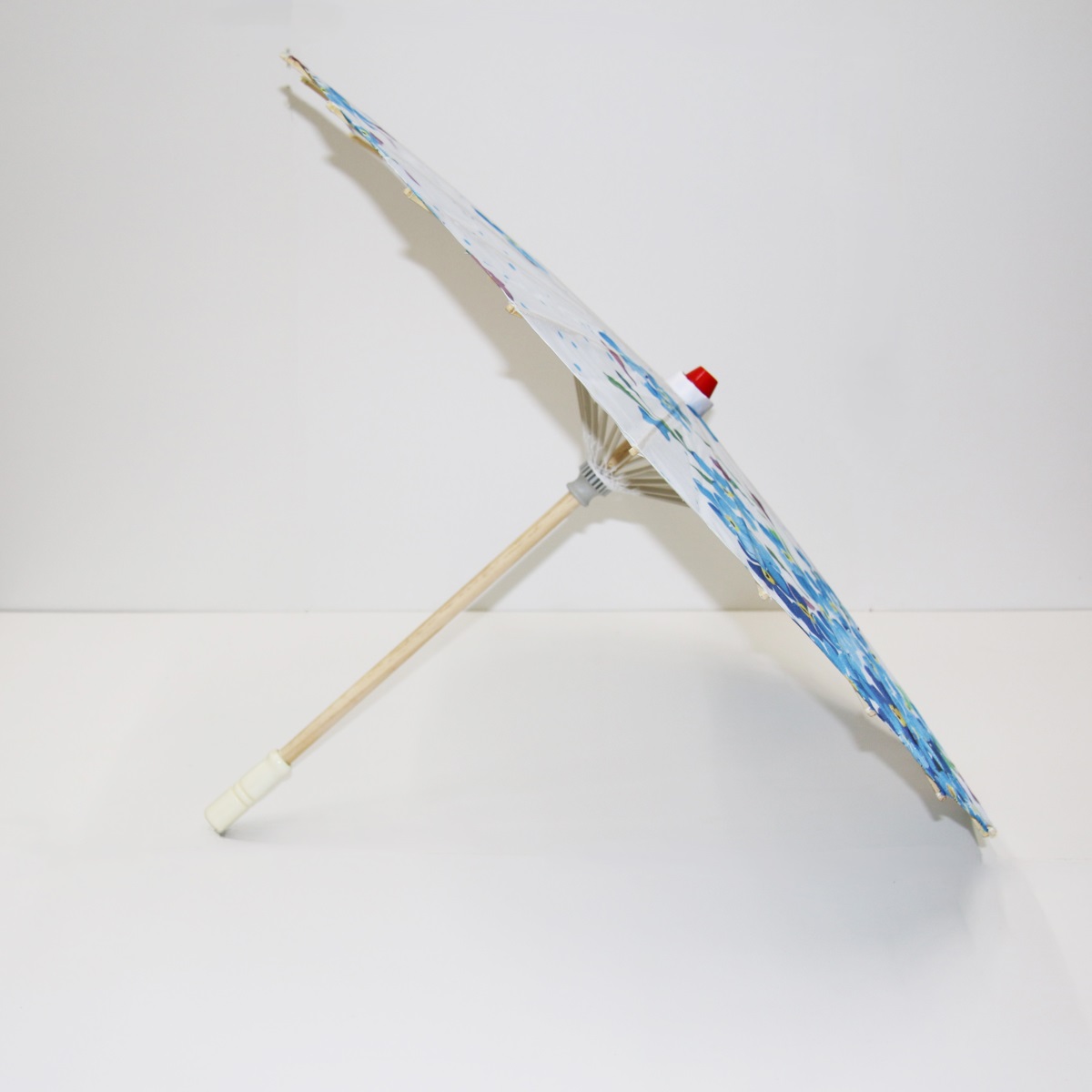 Каркас зонтика выполнен из дерева,купол зонта изготовлен из водоотталкивающего материала,который не пропускает воду.