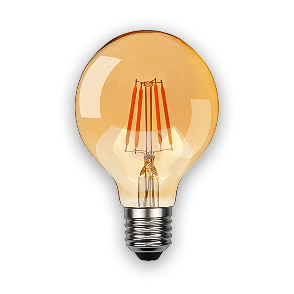 Лампа светодиодная G80 темная E27 W4 с теплотой света 2200K. Колба лампы имеет старинный источник света с светящимися нитями. Отличный выбор как для домов и квартиры в стиле лофт, так и для ресторанов, кафе. Интенсивность свечения – 600 люменов, мощность 6 и 8 Вт. Работает от переменного напряжения 220 В. Срок службы превышает 20 тысяч часов.