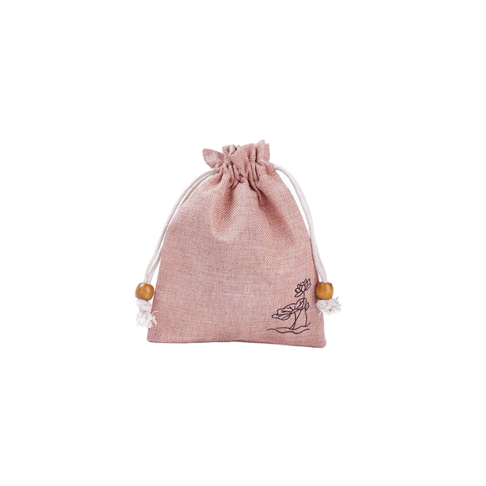 Мешочек из искусственного льна с орнаментом 8х10 см, нежно-розовый