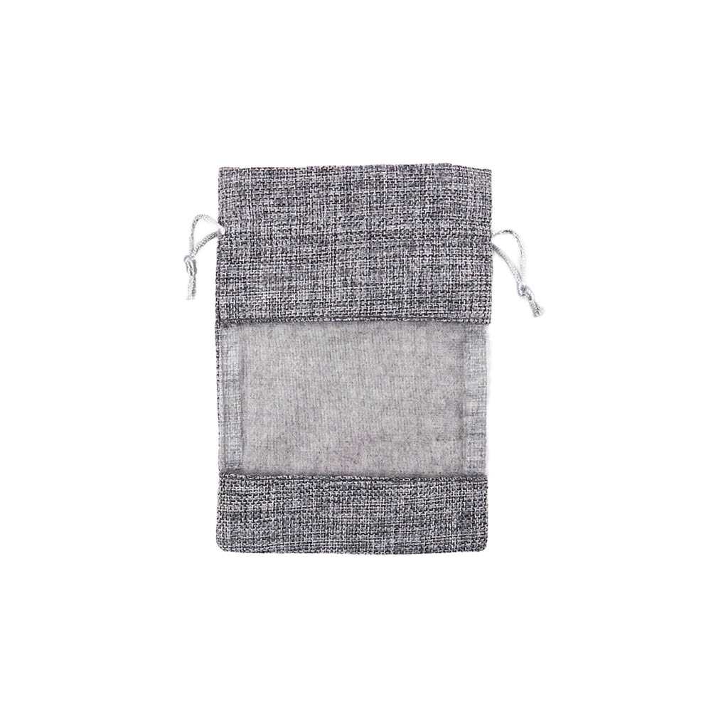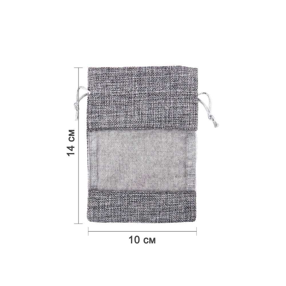 Мешочек из мешковины и органзы 10х14 см серый