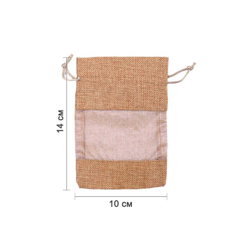 Мешочек из мешковины и органзы 10 × 14 см