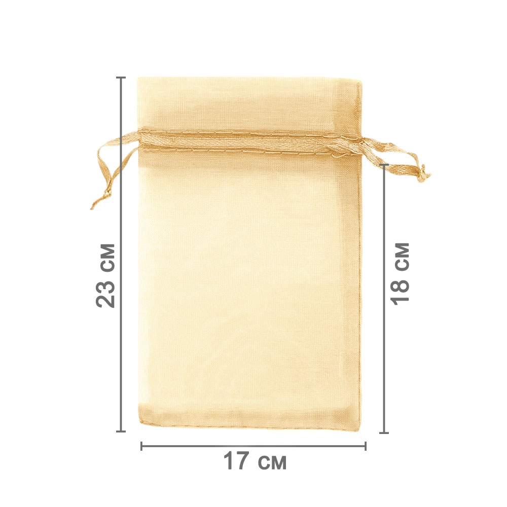 Мешочек из органзы 17 х 23 см — практичный и праздничный аксессуар для упаковки небольших и средних подарков. Полупрозрачная ткань подчёркивает содержимое и делает упаковку изящной.