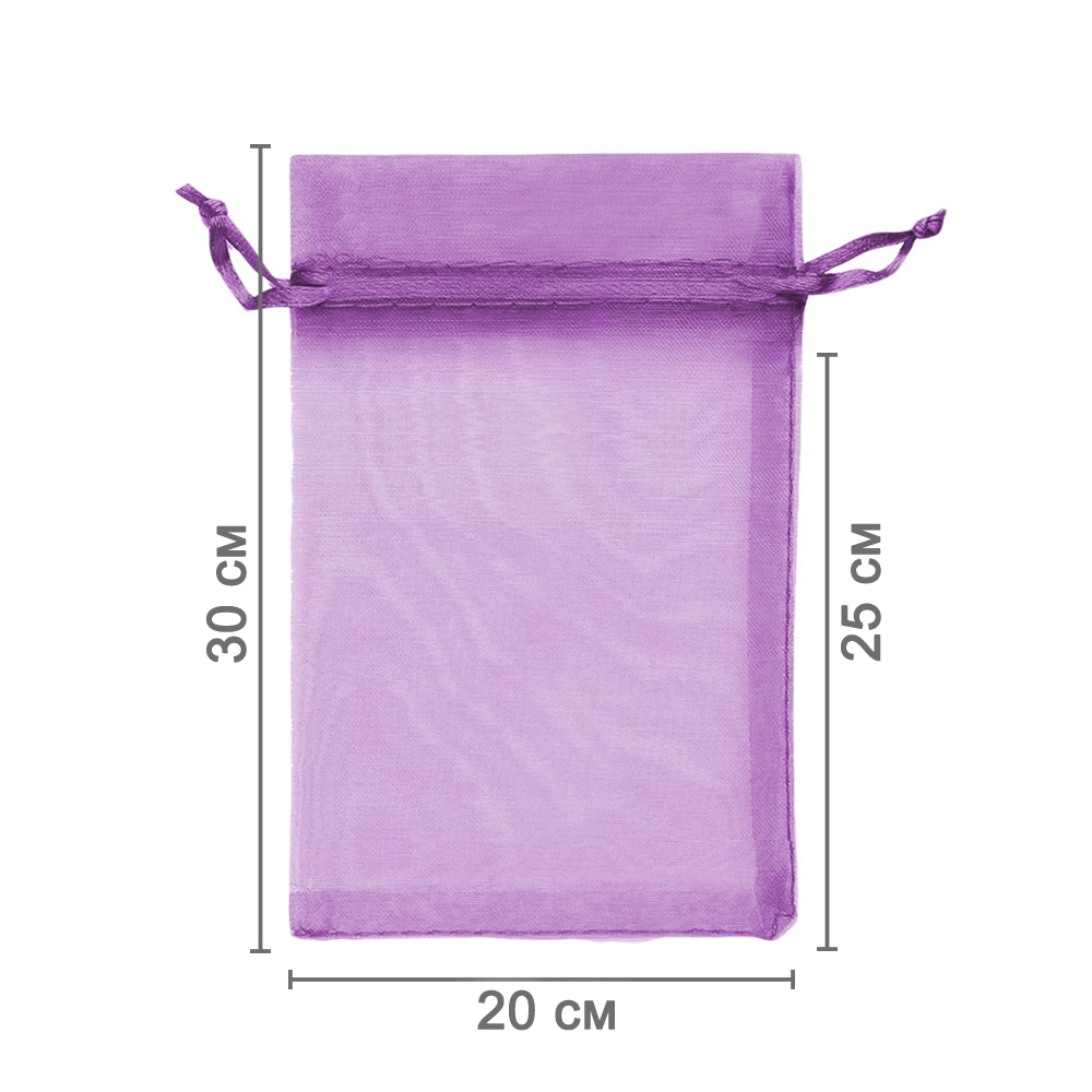 Мешочек из органзы 20 х 30 см — стильный аксессуар для упаковки средних и крупных предметов. Полупрозрачная ткань подчёркивает содержимое и придаёт аккуратный вид.
