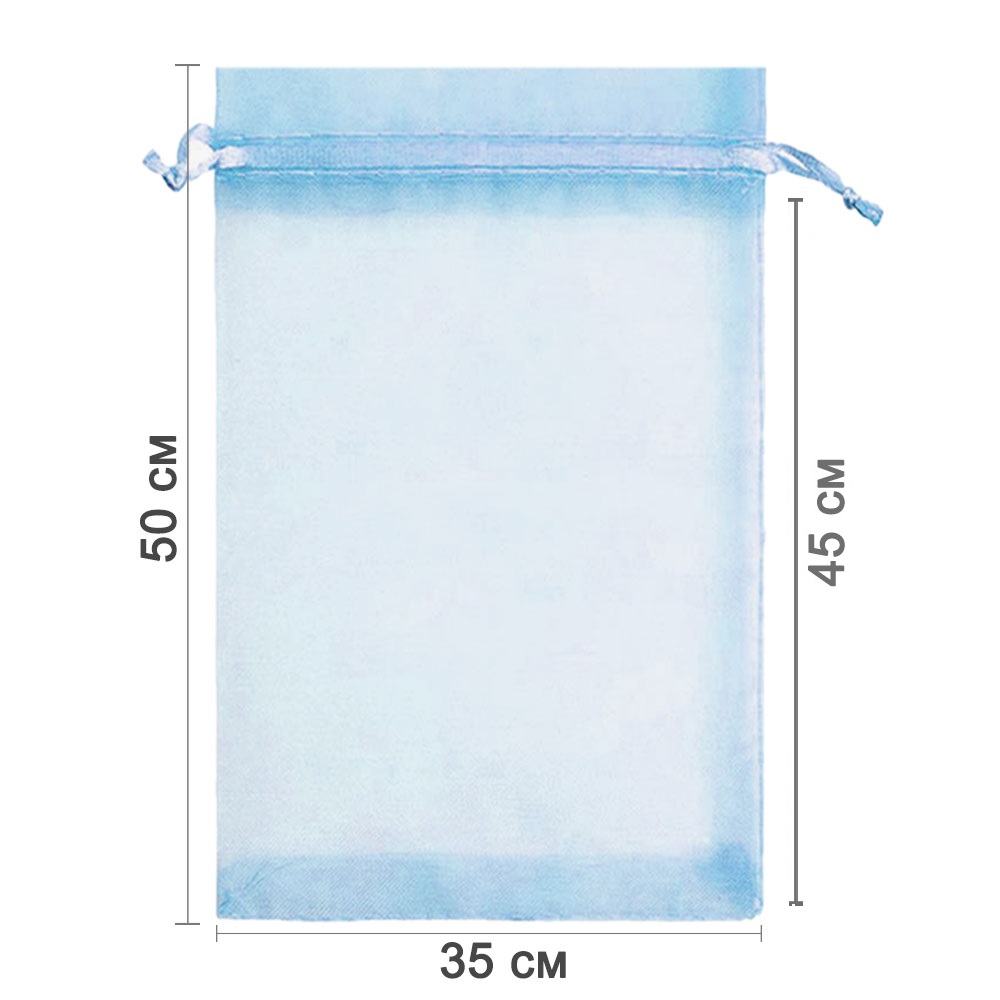 Мешочек из органзы 35 х 50 см — стильная и удобная упаковка для крупных подарков и хранения больших предметов. Лёгкая ткань подчёркивает содержимое и создаёт праздничный вид.