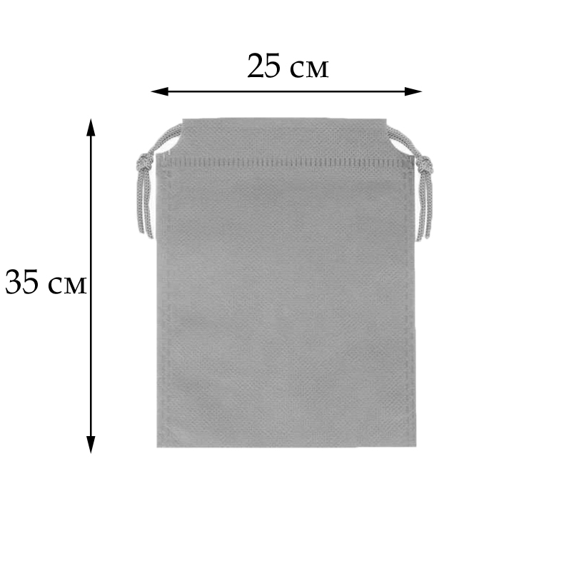 Мешочек из спанбонда, размеры 35х25см, со шнурками, подходит для многоразового использования.