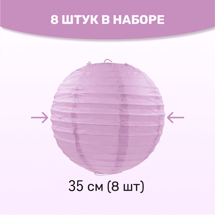 Комплект подвесные фонарики 35 см х 8 шт, светло-сиреневый