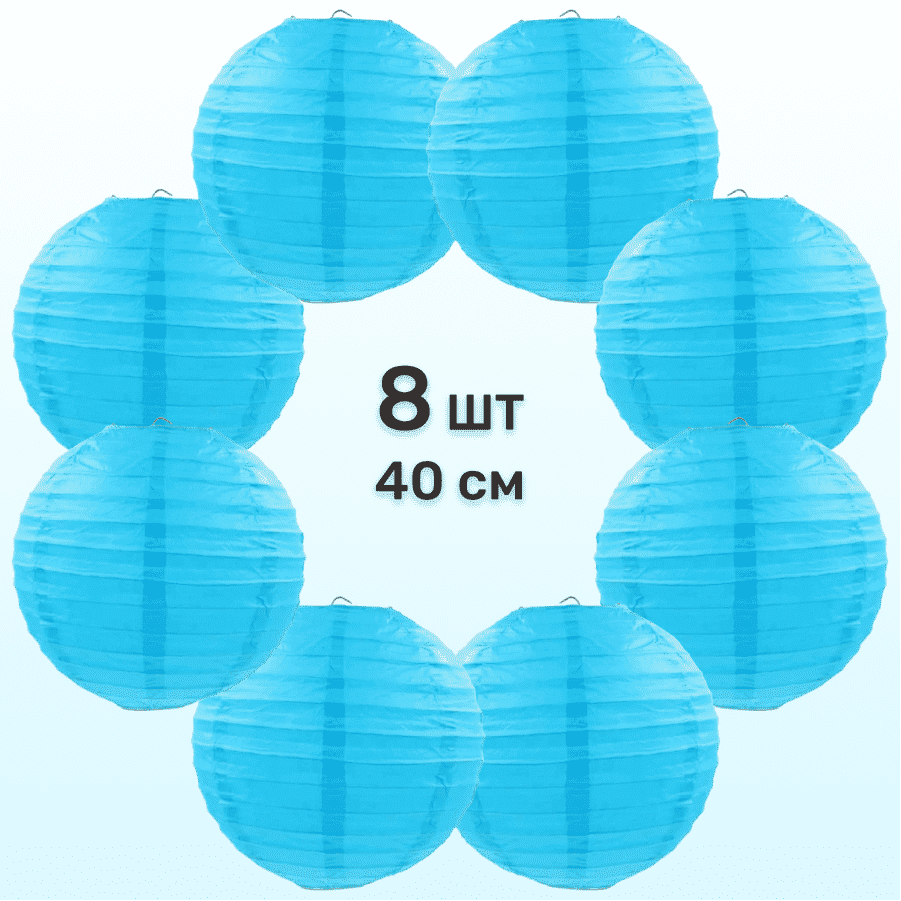 Комплект подвесные фонарики 40 см х 8 шт, светло-синий