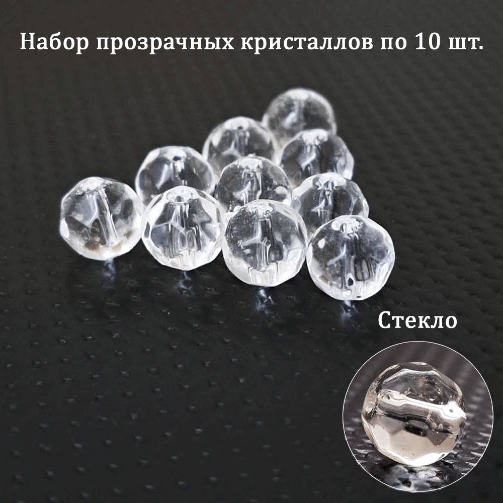 Набор прозрачных кристаллов "Граненый круг" 10 штук по 8 мм подойдет для творчества и оформления декора.