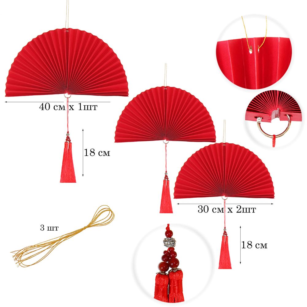 Набор украшений для праздника №73 включает пять шаров-сот и три веера-гармошки.