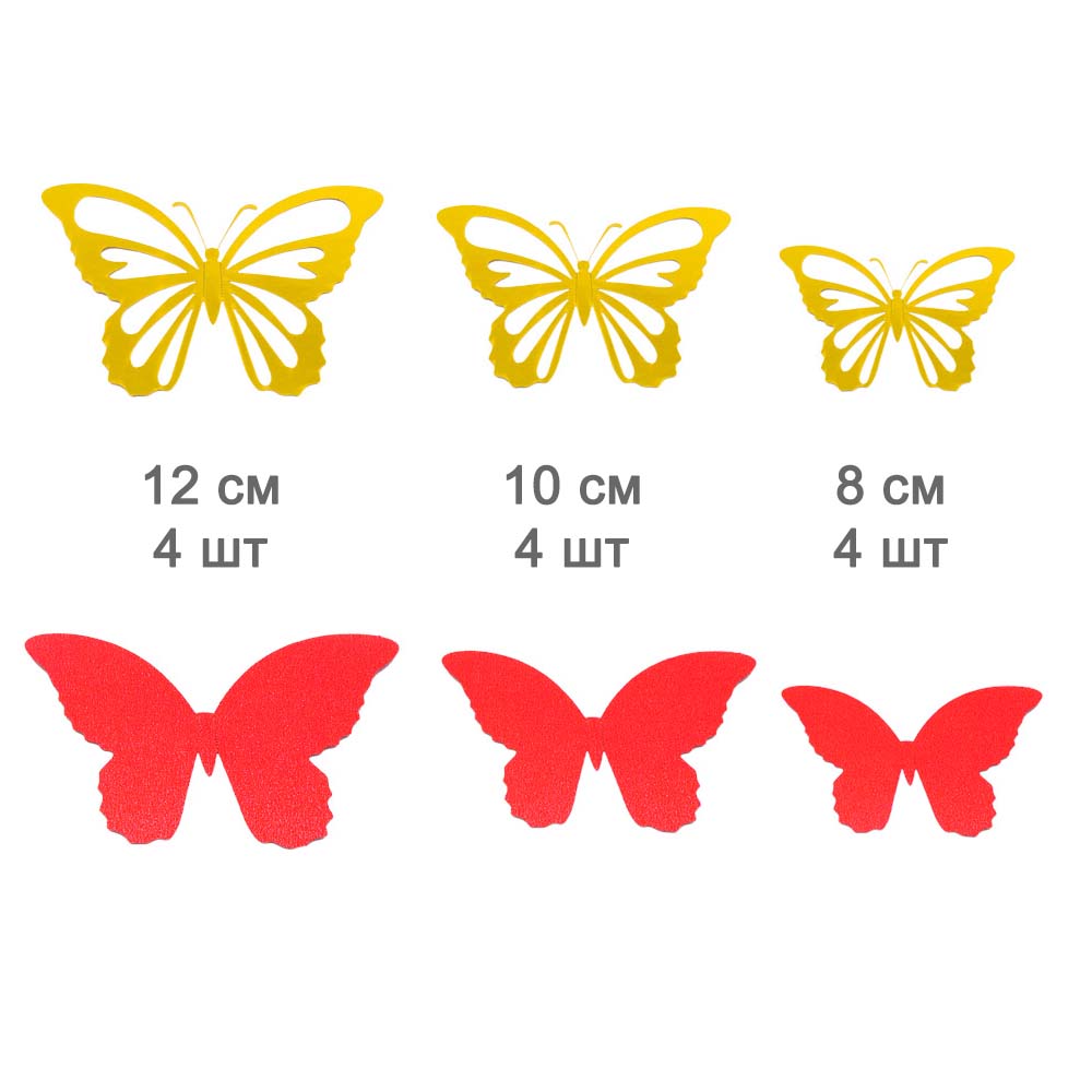 Наклейки Бабочки двойные перламутровые бумажные № 6 12 шт золото+красный