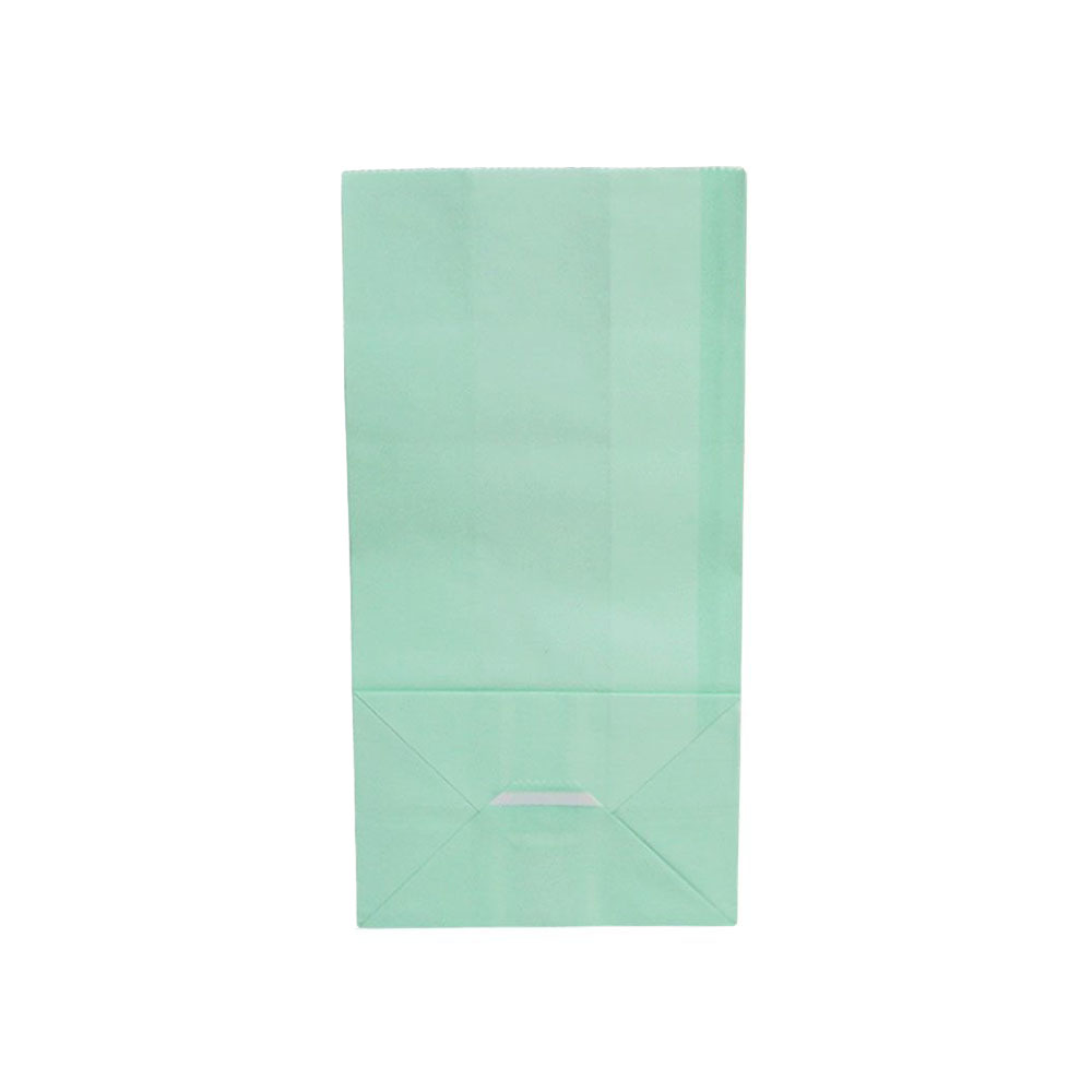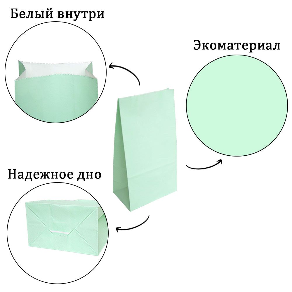 Подарочный пакет из крафтовой бумаги пастельного оттенка с белыми бумажными ручками и белой внутренней стороной.