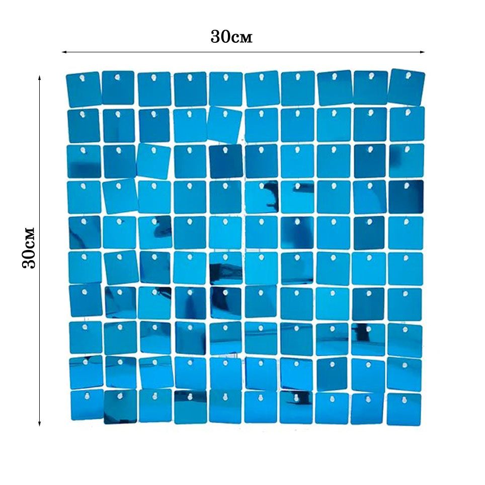 Панель с пайетками 30×30 см на гибкой пластиковой основе. Пластик прочный, хорошо гнётся и не ломается при сгибании. Пайетки переливаются при движении. Панель крепится к стенам, каркасам или соединяется с другими такими же панелями.