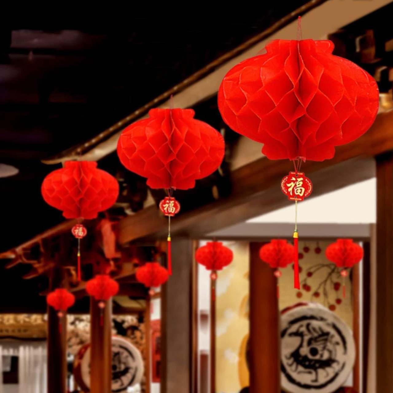 Простота в использовании: Бумажные фонарики имеют форму пчелиных сот с плотными отверстиями, их легко разворачивать и сворачивать. Раскройте концы и склейте их вместе (белая липкая двусторонняя лента на одном конце). Красный бумажный фонарь с кольцом и веревкой сверху легко подвешивается и снимается.