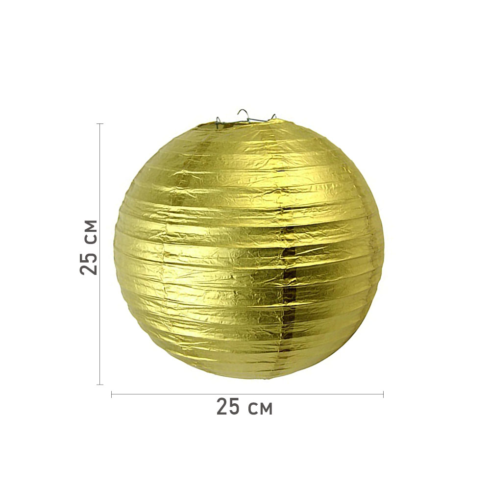 Цвет шара — золото, особенно эффектно смотрится в вечернее время, когда внутри фонарика светится лампочка.