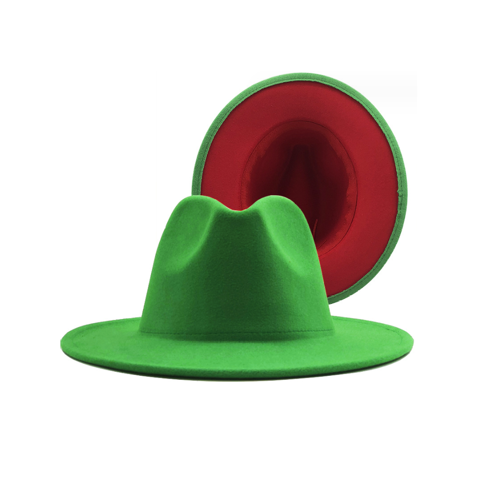 Шляпа Федора фетровая 2 цвета, зеленый+красный