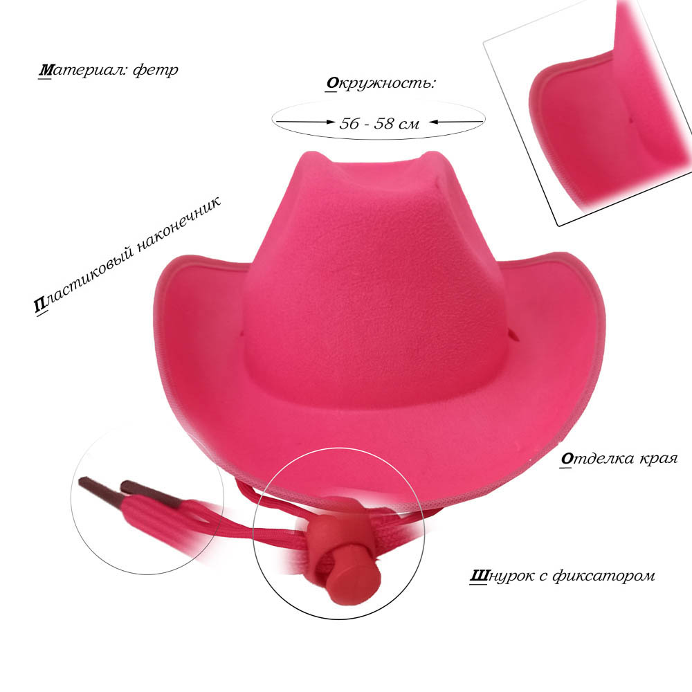 Шляпа ковбойская, малиновый - 1 шт.