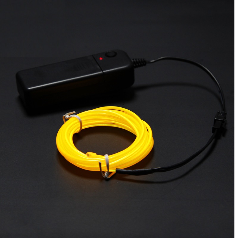 В комплекте с EL проводом, длинной 4 метра,  идет бокс с питанием от батареек, что позволяет его применять где угодно, даже на улице.  Работает от 2-х батареек 2АА (батареек в комплекте нет).