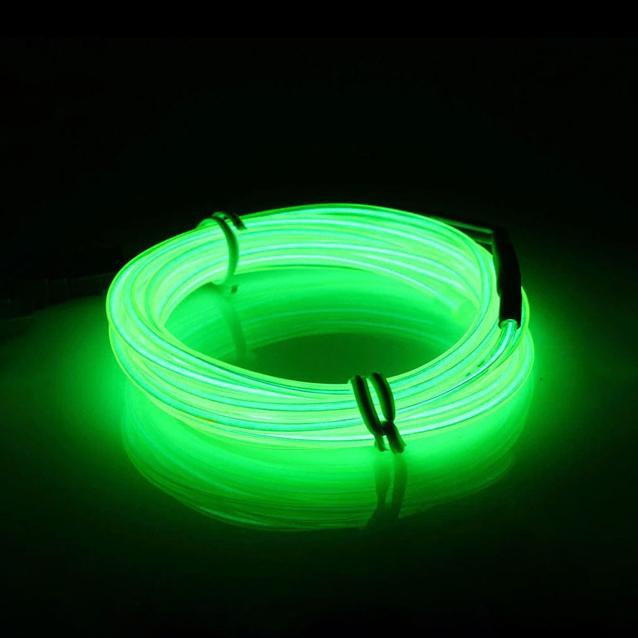 Шнур неоновый светящийся, лайм. Можно применять для праздничного украшения интерьера, а также для декора танцевальных костюмов, новогодней елки, подарков, игрушек.