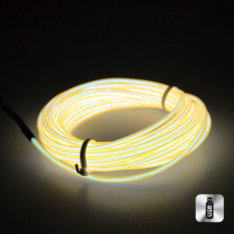 Шнур неоновый светящийся от USB 3 м, желтый