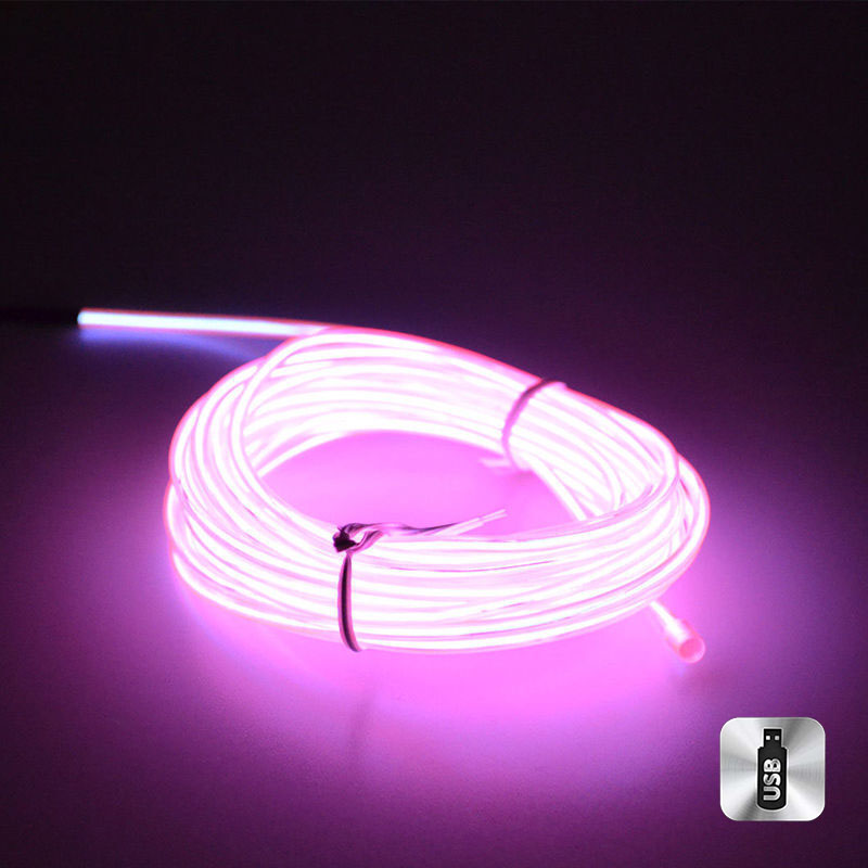 Шнур неоновый светящийся от USB 3 м, розовый