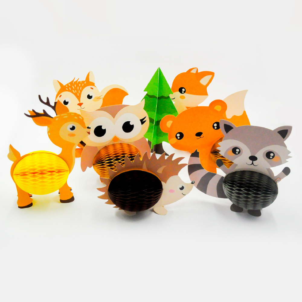 Стоячие сотовые украшения «Лес» — красочный набор декоративных фигурок с лесными животными, который создаст атмосферу уюта и сказки на детском празднике. Украшения отлично подойдут для оформления стола, фотозоны или игровой зоны.
