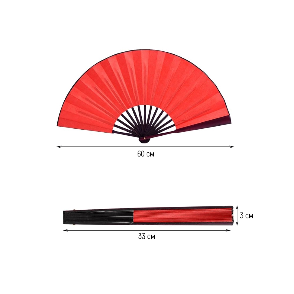 Веер для танцев 33х60см №1, красный-красный