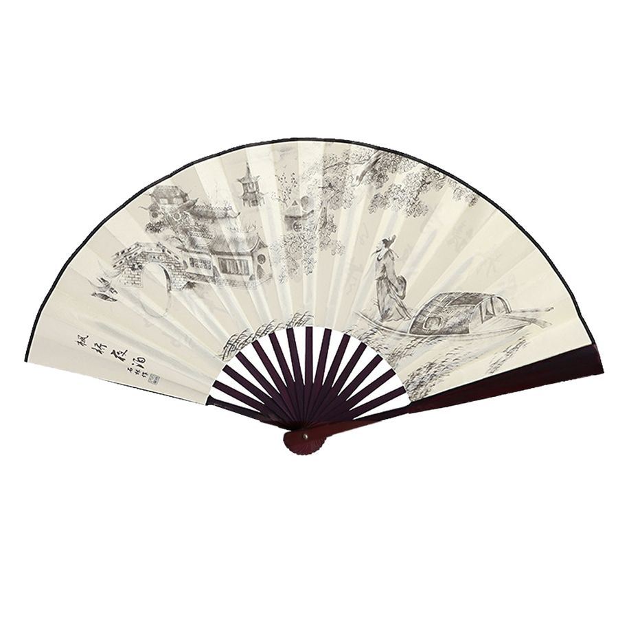 Двухсторонний складной веер для танца. Выполнен из бамбука и плотной ткани.