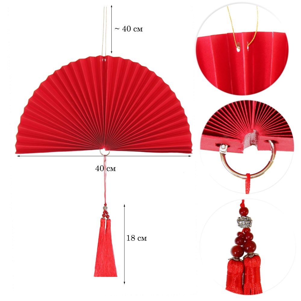Веер-гармошка с кисточкой, 40 см, красный — 1 шт.