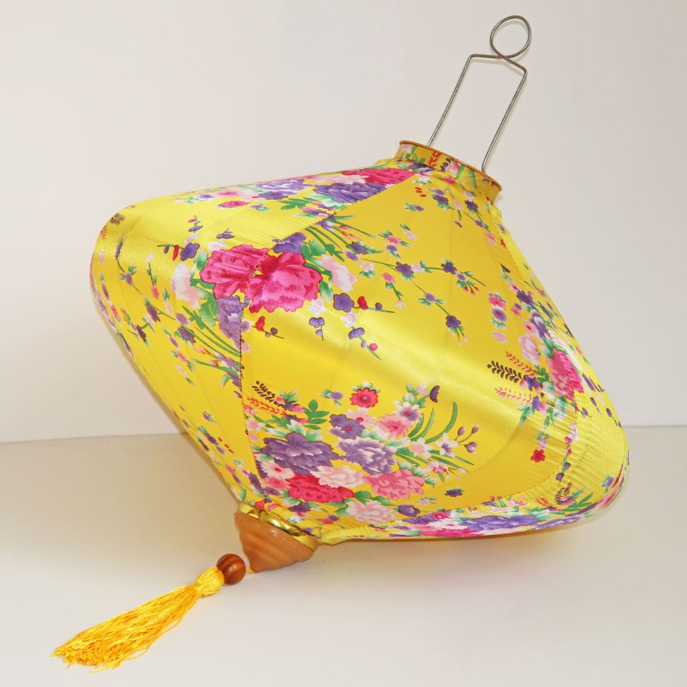 Это традиционные подвесные фонарики ручной работы, изготовленные из шелкового материала с элегантным цветочным узором, которые делают его изысканным и красивым.