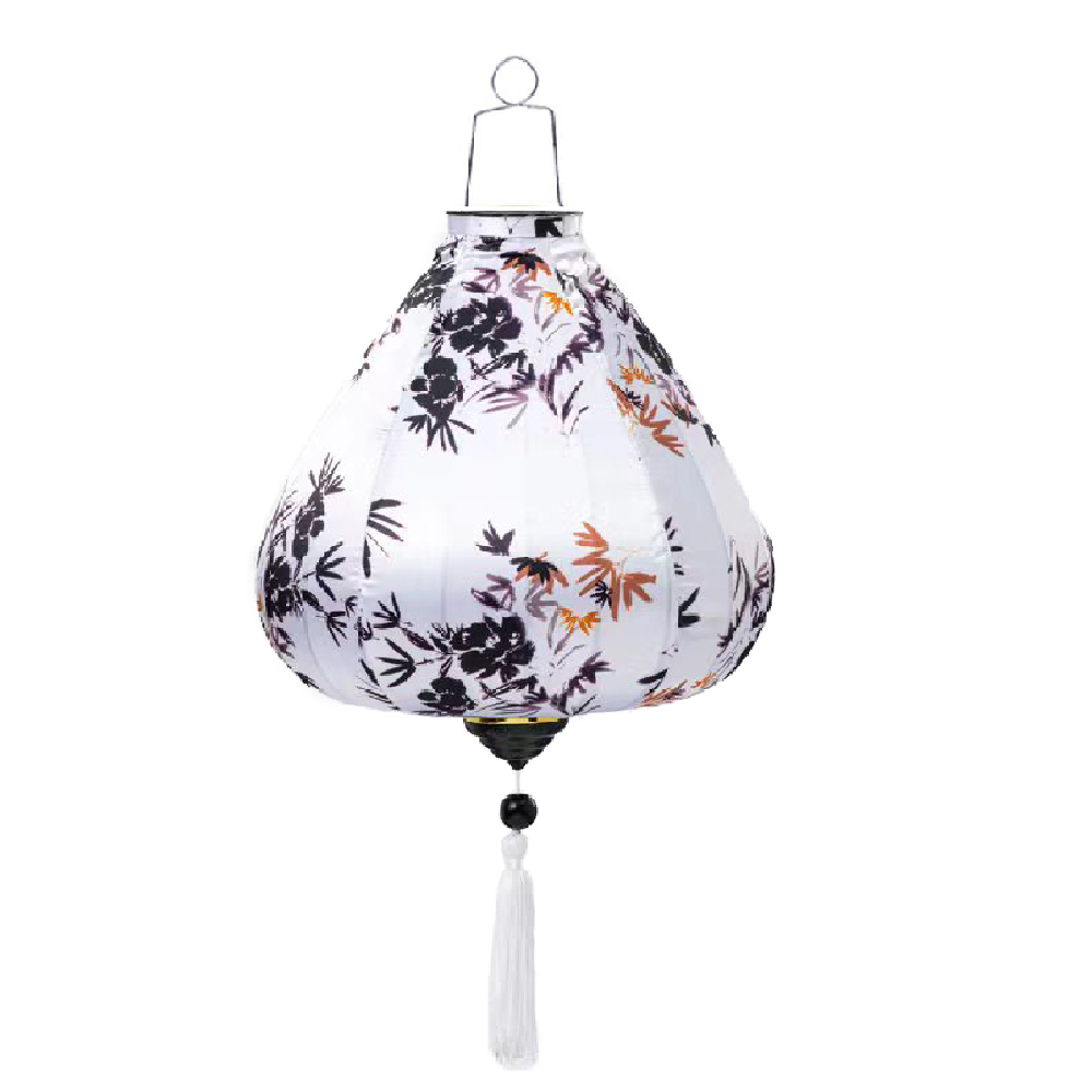 Коллекция подвесных фонарей ручной работы. Конструкция из шелкового полотна с цветочным орнаментом, металлического каркаса и подвесной системы. Модель в белой  цветовой гамме.