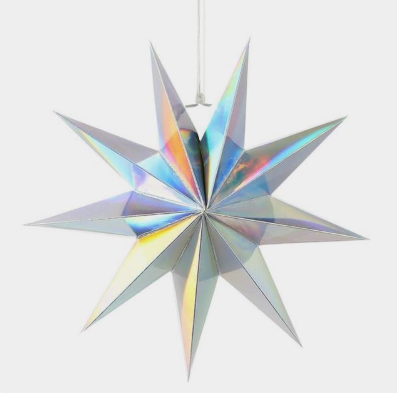 Объёмная девятиконечная звезда 60 см — декоративный элемент для интерьера и праздничного оформления. Лёгкая интерьерная звезда из картона хорошо держит форму и создаёт выразительный объём. Поставляется в сложенном виде, в комплекте шнур для фиксации объёма и подвеса.