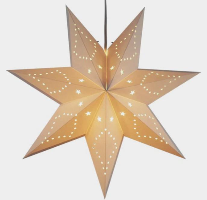 Семиконечная объемная звезда 75 см — великолепный декор из тонкого перфорированного картона. Создает красивые световые эффекты. Поставляется в сложенном виде, в комплекте шнур для фиксации объема и подвеса.